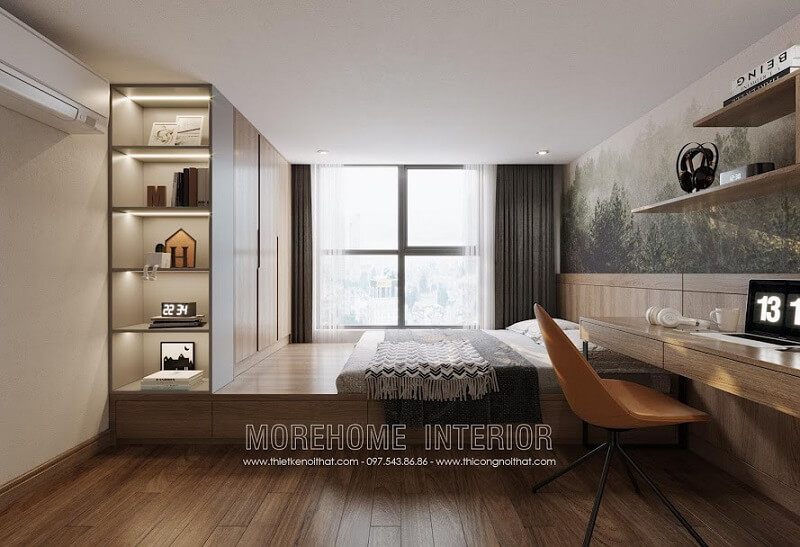 MoreHome đưa ra một mẫu thiết kế nội thất phòng ngủ hiện đại với một mẫu giường ngủ gỗ tự nhiên được yêu thích.